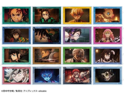 アニメ「鬼滅の刃」の場面写をデザインしたアクリルカードです。こちらも全16種のブラインド仕様となっており、1BOXで全種が揃います。