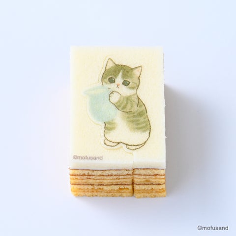 「mofusand かたにゃきバウム」は、人気イラストレーターぢゅの氏が描く「mofusand」のキャラクターをモチーフにした型ぬきバウムです。各フレーバーには異なるモチーフのにゃんこがデザインされており、型ぬきする楽しさも味わえます。
