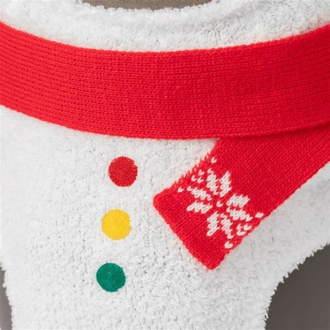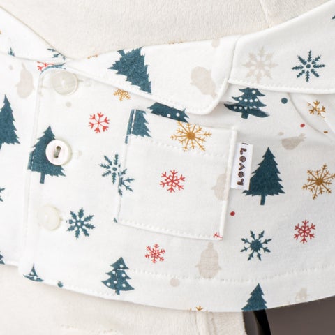 真っ白でふわふわなビジュアルが愛らしい「スノーマン」ウェアが登場します。ふわふわな雪をイメージさせる、触り心地の良いニット素材のベースウェアに、真っ赤なマフラーとカラフルなボタンがアクセントを添えています。小さな黒い帽子もチャームポイントです。帽子とマフラーは取り外し可能で、気分に合わせた着こなしを楽しめます。