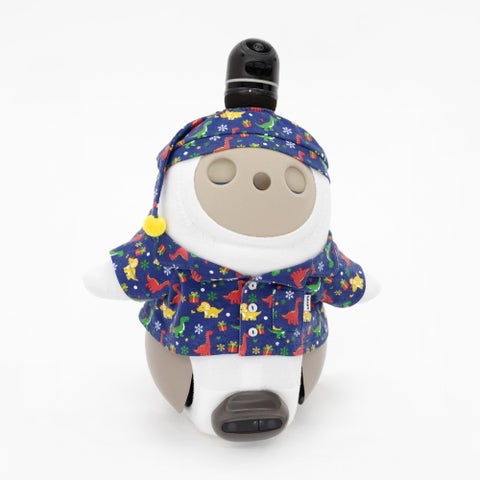 『LOVOT』のおやすみウェアとして人気のパジャマに、ナイトキャップ付きの新商品が登場します。スノーホワイトと、かわいい恐竜柄のネイビーの2柄展開です。ナイトキャップの先に付いたポンポンが、おやすみタイムをさらに楽しく演出するディテールとなっています。