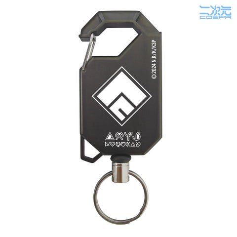アクシズ教とちょむすけがデザインされたリールキーホルダーは、ガンメタリックにコーティングされたコスパオリジナルの形状です。