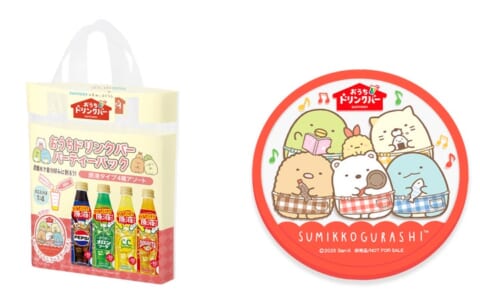 ご家族でさまざまな種類の「おうちドリンクバー」を楽しんでいただきたいとの思いから、親子に人気の「すみっコぐらし」とのコラボレーションが実現しました。本商品には、「おうちドリンクバー」の代表的な4品と、オリジナルデザインの「すみっコぐらし」ラバーコースターがセットになっています。