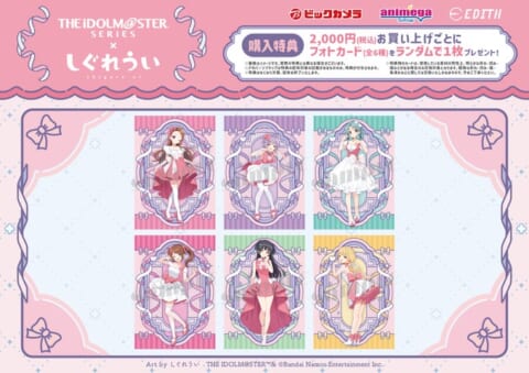 フェア期間中、『アイドルマスター』シリーズ×しぐれういコラボ商品を2,000円(税込)お買い上げごとに、ノベルティフォトカードがランダムで1枚プレゼントされます。