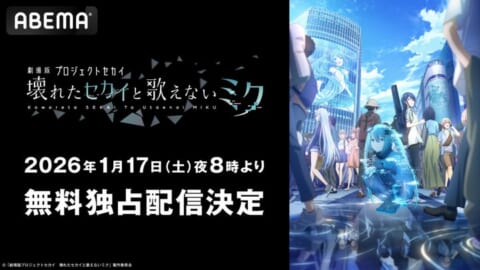 『劇場版プロジェクトセカイ 壊れたセカイと歌えないミク』が、興行収入15億円を突破し、2026年1月17日(土)夜8時より「ABEMA」にて無料独占配信されることが決定しました。