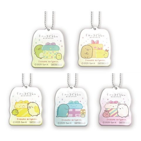 オリジナルアクリルキーホルダー(全5種ランダム、縦約6cm)が付属します。料金は通常の利用料金に700円/個が加算されます。アクリルキーホルダーは10個まで購入可能ですが、ランダムでのお渡しとなりデザインを選ぶことはできません。アクリルキーホルダーのみの購入はできません。