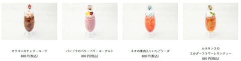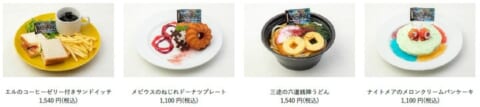 カフェレストラン「Frame cafe」では、「モンスト」のキャラクターや「モンソニ!」のユニットをイメージしたメニューが販売されます。メニュー1点ご注文につき、トレーディングコースターがランダムで1枚プレゼントされます。