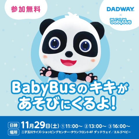2025年11月29日(土)には、BabyBusの人気キャラクター「キキ」がDADWAY/Ergobaby 二子玉川ライズ店に来店し、記念撮影などを楽しめるグリーティングイベントが開催されます。