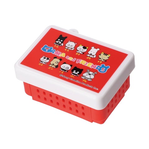 「タマ&フレンズ ミニランチBOXキーホルダー」は、食べ終わった後に折りたたんで持ち帰れるランチBOXをミニチュア化したキーホルダーです。ランチBOXの蓋には、タマと3丁目の仲間たちが公園で遊ぶ様子や、おもちゃで遊ぶタマとポチなどのデザインが施されています。