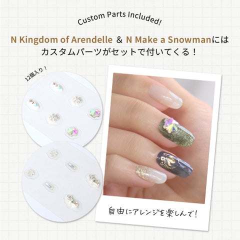 「N Kingdom of Arendelle」と「N Make a Snowman」の2種には、カスタムパーツシールが付属しています。
