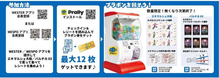 2店舗分の500円(税込)以上のWESTERレシート、およびエキマルシェ大阪crostに掲出されたコードをプラリーで読み取り。 |
