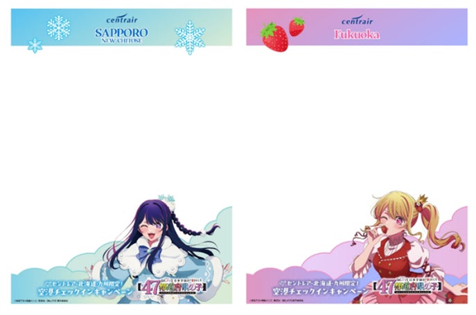 中部国際空港株式会社は、北海道および九州路線の搭乗促進を目的とし、TVアニメ【推しの子】とタイアップしたキャンペーンを実施します。期間中、対象空港に設置された「チェックインスポット」でスマートフォンを使ってチェックインすると、様々な特典を受け取れます。