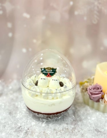店内飲食限定で、通常よりも少し大きめの「スノードーム風シマエナガケーキ」を提供します。苺とミルク、チョコレートの3種類の味を用意しています。