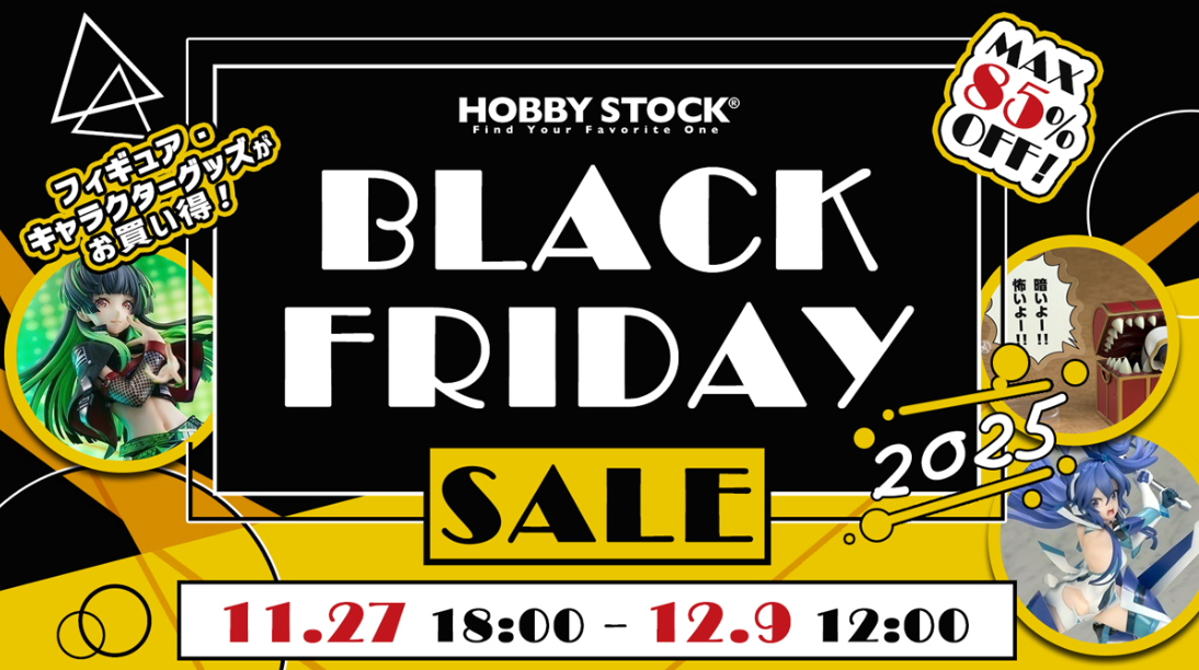 ホビーストックは、年に一度の「BLACK FRIDAYセール2025」を2025年11月27日(木)18時より開催します。フィギュアやプラモデル、人気アニメグッズなど幅広い商品が最大85%OFFとなるビッグセールです。この機会にお得にアイテムを入手できる、開催内容や参加方法を詳しく紹介するのでぜひ参考にしてください。