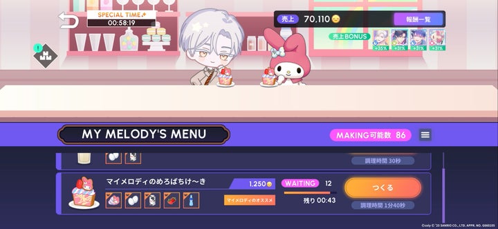 グルーヴマッチパズルで素材を集め、サンリオキャラクターズと一緒にAporiaで特別なメニューをメイキングできます。レシピメモでは、ペアになったAporiaスタッフとサンリオキャラクターズとのエピソードも楽しめます。今だけの特別なメニューをぜひ作ってください。
