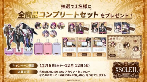 NIJISANJI ENに所属する人気ユニット「XSOLEIL(エクソレイ)」のデビュー3周年を記念したオリジナルグッズが、2025年12月6日(土)13:00より全世界で予約受付を開始します。