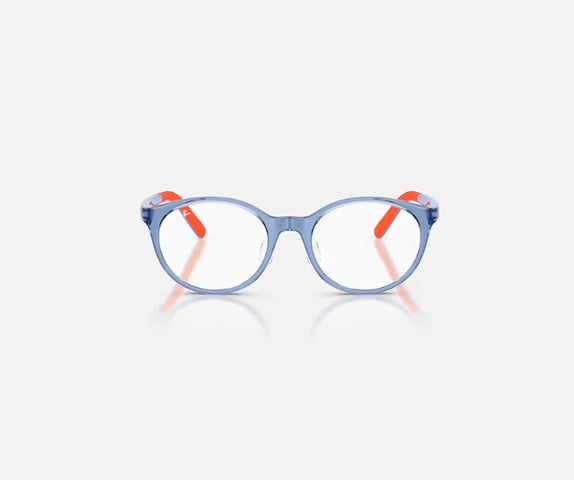 軽量なスタイルが特徴のメガネフレームです。透明感のあるブルーのバイオベースナイロンフレームに、遊び心あふれるオレンジのアクセントをプラスしました。テンプルにはバイオベース素材を使用し、一日中快適な着け心地を提供します。