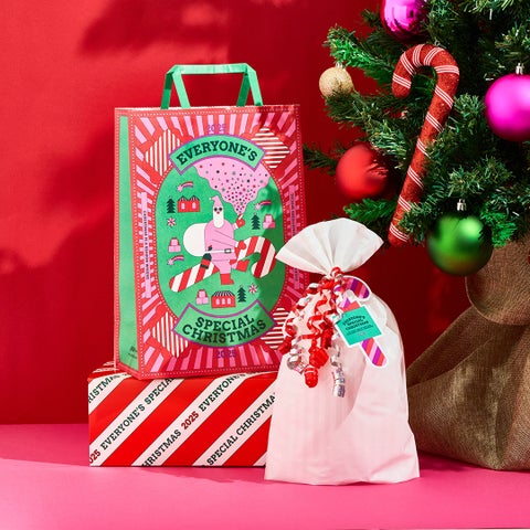 ホリデーシーズン限定のギフトラッピング(無料)を提供します。また、ショッピングバッグ(20円)も限定デザインで登場します。