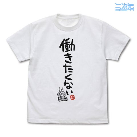 双葉杏のもう一つの名言「働きたくない」をフィーチャーしたTシャツです。イラストレーター「ちと」氏によるイラストが使用されており、杏の怠惰な魅力を表現しています。カラーはWHITEです。