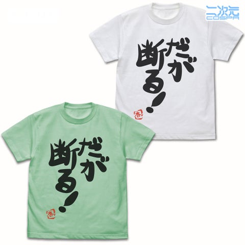 双葉杏の代表的なセリフ「だが断る!」をデザインしたTシャツです。杏のキャラクター性を象徴するセリフが、インパクトのある一枚に仕上がっています。カラーはMELONとWHITEの2種類から選べます。