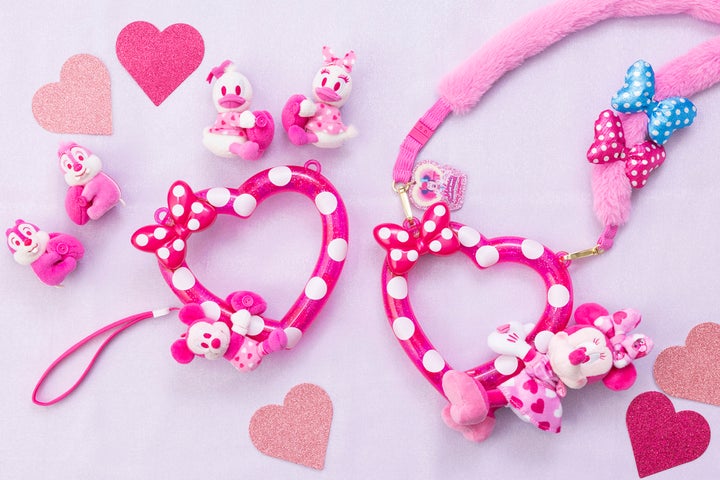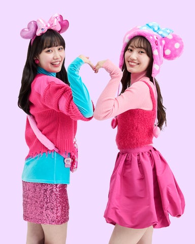 その他、ハートやリボン、ビジューが付いたカチューシャなど、ピンク色の身に着けグッズを多数展開します。ピンク色をはじめ、多くの色に点滅するミニーをイメージした光るおもちゃは、コーディネートのアクセントや夜のファンダーナイトの世界を楽しむアイテムとして最適です。仲間と一緒に「ミニーのファンダーランド」の世界を一日中満喫できます。