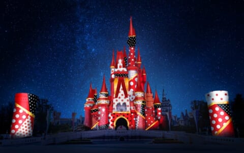 シンデレラ城の環境演出では、「ミニーのファンダーランド」やこれまでのミニーにまつわる限定プログラム、スペシャルイベント「ベリー・ベリー・ミニー!」、「ミニー・べスティーズ・バッシュ!」のパレードの楽曲に乗せて、水玉やリボン、ハートなどミニーにまつわるモチーフが夜のシンデレラ城を彩ります。1回約20分の環境演出の中で、短い映像が数分おきに投影されます(1日3回)。詳しい公演時刻は東京ディズニーリゾート・オフィシャルウェブサイトや東京ディズニーリゾート・アプリで確認してください。