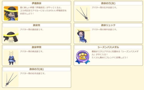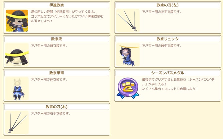 イベントに参加して、新しい仲間「伊達政宗」を島にお迎えしたり、アバター用の衣装「政宗甲冑」などの豪華な報酬を獲得する機会です。
