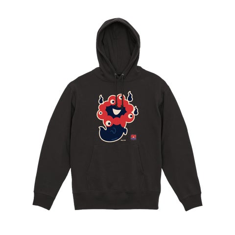日常生活で「おばけミャクミャク」を楽しめるパーカーとマグカップも登場します。パーカーはホワイトとブラックの2色展開で、M・L・XLのサイズを用意しています。マグカップとともに、普段使いにおすすめのアイテムです。
