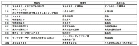 書泉・芳林堂書店は、2024年12月1日から2025年11月30日までの期間で集計した2025年のベストセラーを発表しました。一般的な書店とは異なる「趣味の本屋」として、今年も独特なラインナップが特徴です。全体ランキングに加え、同社が力を入れる9つのジャンル別のベスト5も公開しています。