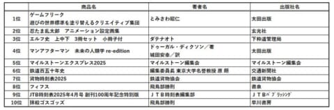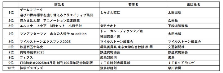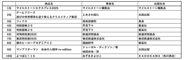 さらに「鉄道の書泉」ならではの時刻表から、『貨物時刻表』と『東武時刻表』が今年も2タイトルランクインし、2023年から3年連続のベスト10入りを達成しています。