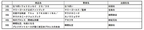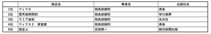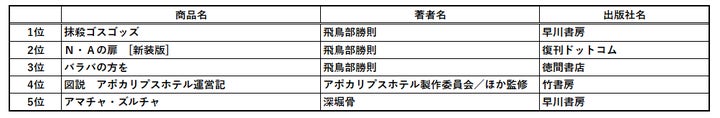 - 文芸書 ベスト5