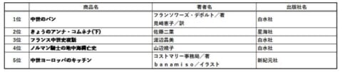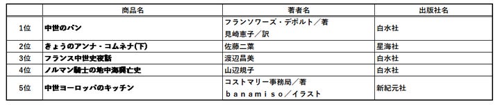 中世におけるパンと、パンを取り巻く文化や社会を語った名著が1位を獲得しました。西洋中世唯一の女性歴史家、ビザンツ皇女の数奇な運命を鮮やかに描いたコミック「アンナ・コムネナ」は今年ついに最終巻を迎えましたが、その公式同人誌が2位です。1位から4位までのランクイン作品はいずれも書泉での復刊と限定販売品です。