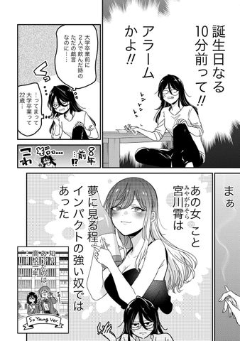 本作は、「お互い30まで独りだったら一緒に暮らそうね」という酔った勢いの口約束から始まる物語です。30歳の誕生日を迎える直前の超ド深夜、主人公・月子の家に約束相手の霄(そら)が現れ、二人の同居生活が幕を開けます。キラキラした青春ではないけれど、意外と楽しい三十路のふたりぐらしが描かれます。