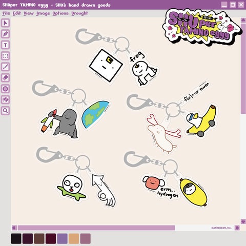 NIJISANJI ENのライバーShu Yaminoさんが初めて手掛けるオリジナルグッズシリーズ「SHUper Yamino Eyyy」は、本人の独特な画風とユーモアが凝縮されたコレクションです。