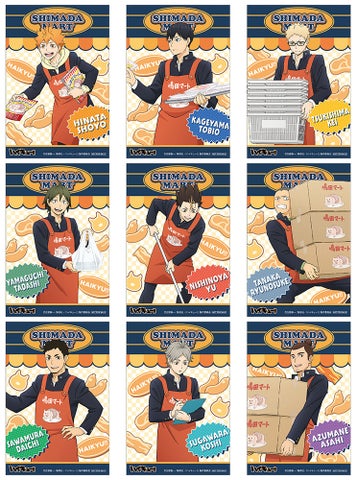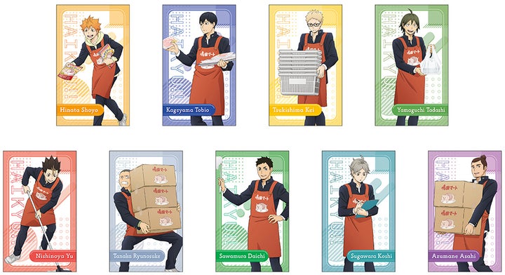 烏野高校排球部のメンバー9人が嶋田マートで職業体験する描き下ろしビジュアルを使用した新商品が登場します。普段使いしやすいアイテムからコレクションアイテムまで、幅広いラインナップです。