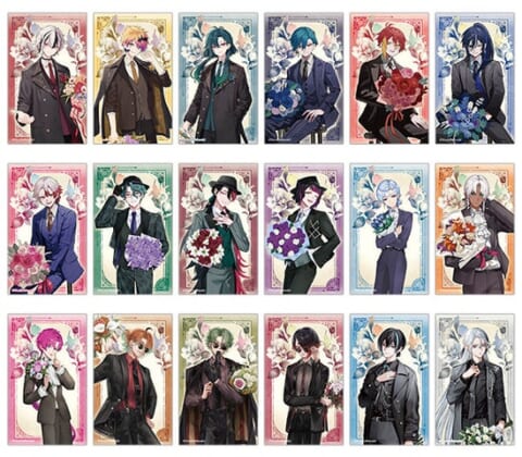 「『悪魔執事と黒い猫』4th Anniversary フェア in アニメイト」では、期間中に対象商品をご購入・ご予約いただいた方に、特典「花束カード」(全18種)を1枚プレゼントします。特典はランダム配布のため、絵柄をお選びいただけません。