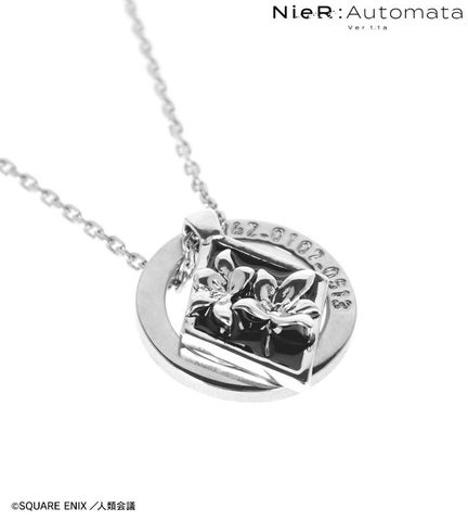 2Bと9Sのモチーフデザインチャームを付けたネックレスです。チャームにはそれぞれのロールアウト日、月の涙、ブラックボックスが使用されており、作品らしいデザインに仕上げています。素材には真鍮を採用し、ディテールにもこだわったアイテムです。オンオフ問わずおしゃれに着用できます。