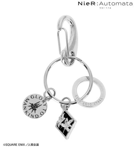 2Bと9Sのモチーフデザインチャームを付けたキーリングです。チャームには、2B、9Sのロールアウト日、月の涙、ブラックボックスが取り入れられています。鞄などに取り付ける仕様で、ファッションのアクセントとしても活用できます。オンオフ問わずおしゃれに着用できる万能アイテムです。