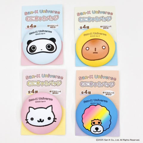 柔らかい素材が特徴の「むにきゃらバッジ」は、指で押すと「むに」っとした感触がたまらないアイテムです。たれぱんだ、こげぱん、アフロ犬、にゃんにゃんにゃんこの4種類があり、各770円(税込)で提供します。