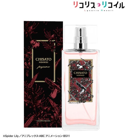 千束の歴代最強と称されるファーストリコリスとしてのイメージと、明るく天真爛漫な一面を表現したフルーティーフローラルの香りです。ローズとミュゲのブーケにフルーツとシトラスを添え、アクセントにスモーキーな香りを加えています。