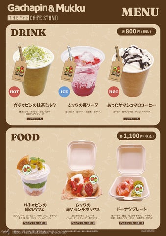 「ガチャピン・ムック」THEキャラ CAFE STANDでは、グランドメニューに加え、ガチャピン・ムックの期間限定オリジナルメニューを用意し、来店を歓迎します。