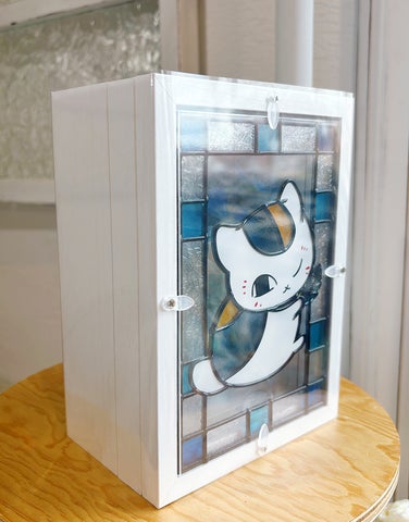 本を閉じるように折りたたんでも、グラスアートの面が表に来るように設計されているため、ニャンコ先生の姿が隠れることはありません。デスクや棚のわずかなスペースにも飾りやすく、奥行き感のあるコンパクトなインテリアとしてお楽しみいただけます。