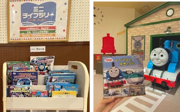 トーマスのドキドキプレイグラウンド内には、トーマスの本を集めた「ミニライブラリー」を設置しています。ポプラ社より寄贈された「汽車の絵本シリーズ」や「トーマス大図鑑」、日本オリジナルストーリーの新作絵本「トーマスとゆきのくに」など、様々な本を用意します。親子でゆっくりと読書を楽しむことができます。