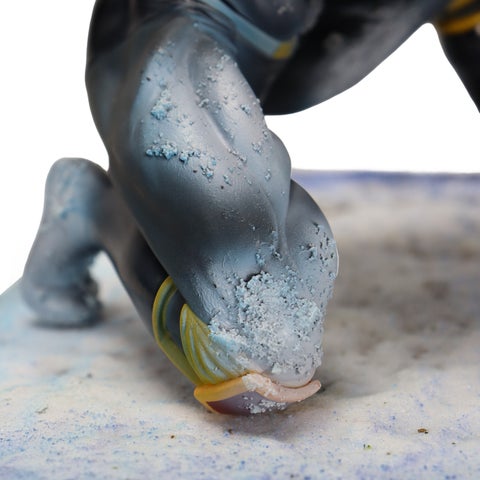 本商品の最大の魅力は、「実際の雪を模したジオラマテクスチャ」で仕上げた加工です。雪のテクスチャはフィギュア1点1点に職人が手作業で施します。雪の台座も、アクリル素材にスノーパウダーを固着させ、地表などの演出もあしらった特注ジオラマが付属。卓上で臨場感ある雪上の雰囲気を楽しめます。