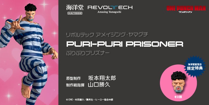 大人気アニメ『ワンパンマン』より、S級ヒーロー「ぷりぷりプリズナー」がリボルテック アメイジング・ヤマグチシリーズに登場。2026年7月発売予定で、価格は11,000円(税込)です。特に、海洋堂直営店での予約には限定特典「キス顔」が付属します。その詳細や購入方法を詳しく紹介するのでぜひ参考にしてください。