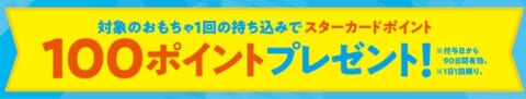 今回の「おもちゃのリユース大作戦」では、対象のおもちゃをお持ち込みいただいた方にスターカードポイント100ポイントをプレゼントしました。お持ち込みはお一人様1日1回限りで、点数に関わらず10日前後で100ポイントを付与しました。