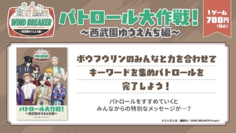 TVアニメ『WIND BREAKER』と西武園ゆうえんちのコラボイベントが本日12月11日より開催します。昭和レトロな装いの“ボウフウリン”メンバーが登場し、限定グッズやコラボフード、録り下ろしボイスが楽しめる盛りだくさんの内容です。