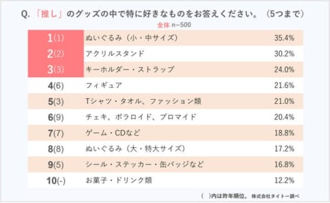 タイトーは、2025年10月に実施した「推し活」に関するアンケート調査で、「ぬいぐるみ(小・中)」が「推し」グッズの人気1位に選ばれたことを発表しました。この背景には、昨今の「ぬい活」人気が大きく影響していると考えられます。