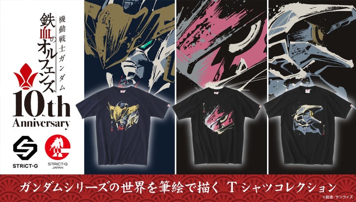 放送開始10周年を記念して「STRICT-G JAPAN」シリーズより、『機動戦士ガンダム 鉄血のオルフェンズ』のモビルスーツを筆絵タッチで表現したTシャツが登場します。日本製の高い品質が特徴です。