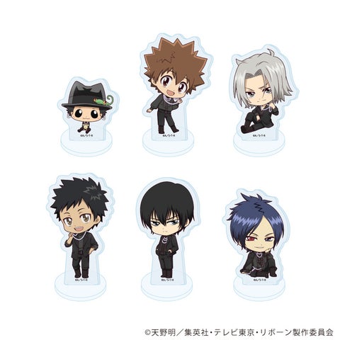 今回の新作グッズには、リボーン、沢田綱吉、獄寺隼人、山本武、雲雀恭弥、六道骸の6キャラクターが登場します。ブラインド商品は、ランダムで1種が当たる単品と、BOX内全種を手に入れられるコンプリートセットを用意しています。