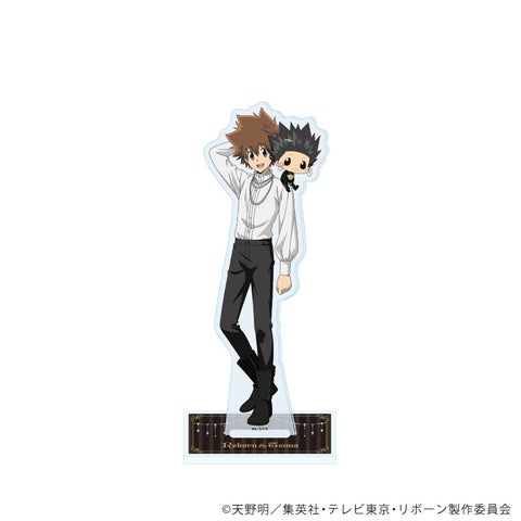 描き下ろしイラストを縦横最大15cmのサイズに凝縮したアクリルスタンドです。キャラクターの全身を描いているため、ツナたちのポーズや表情、洋服の細部に至るまで鑑賞できます。サイズはデザインによって異なります。